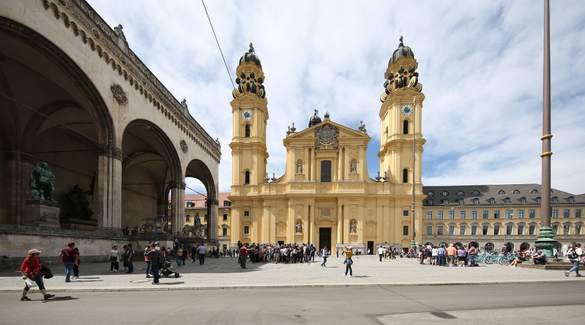 An dieses Bündnis der Herrscherfamilien erinnert die Gedenktafel an der Theatinerkirche